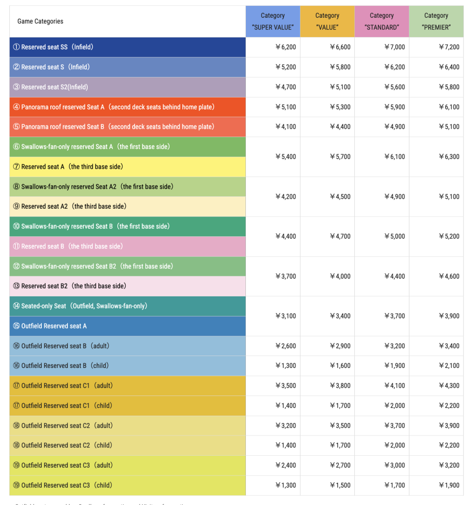 This is the set rate for tickets according to the Yakult Swallows English Ticketing site: